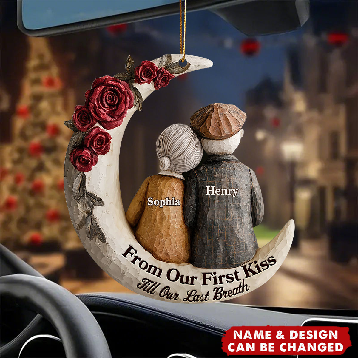 This delicate acrylic ornament captures a moment of pure connection: two souls held in an eternal embrace, cradled by the gentle curve of a crescent moon. Personalized with your names, it’s a luminous tribute to a bond that transcends the everyday—a love written in the stars, yet held tenderly in your hands.